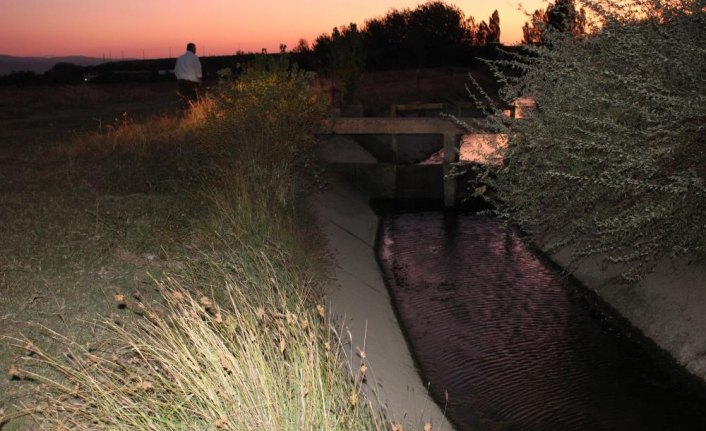 Cürlü köyünde İsmail Kaygısız'a ait bir manda, DSİ'ye ait sulama kalanına düştü.