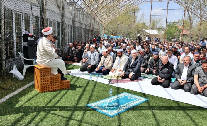 Vatandaşlar, Sulusaray Merkez Camisi'nin yanındaki halı sahada da cuma namazı kıldı. TOKAT (AA)