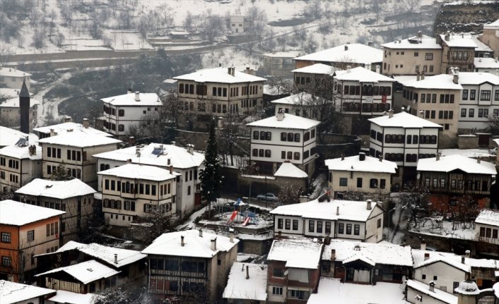 KARABÜK (AA) - UNESCO Dünya Miras Listesi'nde yer alan ve "en iyi korunan 20 kent" arasında bulunan Karabük'ün Safranbolu ilçesinde, tarihi konaklar beyaz örtüyle kaplandı.