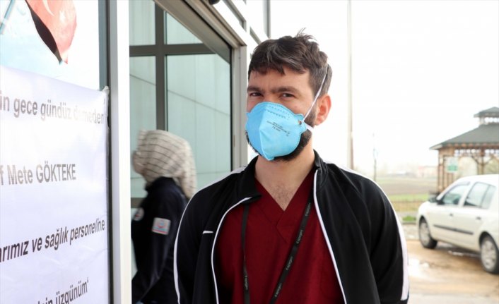 "Bu süreçte gerektiğinde canımızı hiçe sayarak, herkesin çekindiği, girmek istemediği yerlere gözümüz kapalı giriyoruz. Bir nebze olsun bunların anlaşılabilmesi açısından bu pankartı bir süre daha tutmayı düşünüyoruz. Bu pankartı yaptırmamızdaki amaç ise hasta yakını ve hastaların bizleri anlamaları. Sağlık çalışanlarına karşı tutumlarında biraz daha dikkatli olmalarını istedik."