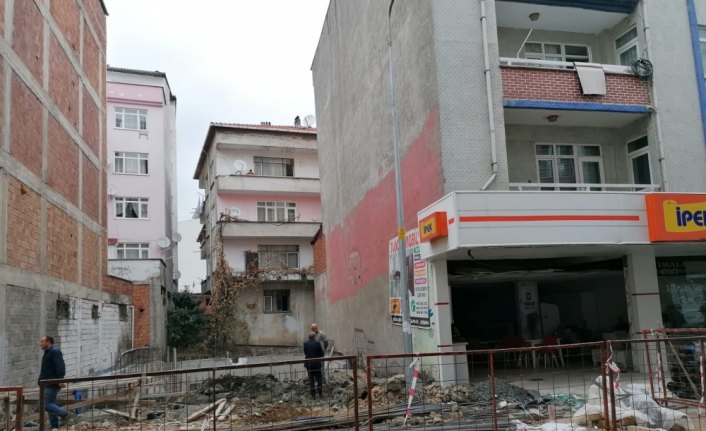 Sarıcalı Mahallesi Yunus Emre Caddesi'nde sürdürülen inşaat çalışmasında su borusunun patlaması dolayısıyla yakındaki 4 katlı binanın temelinde toprak kayması oluştu.
