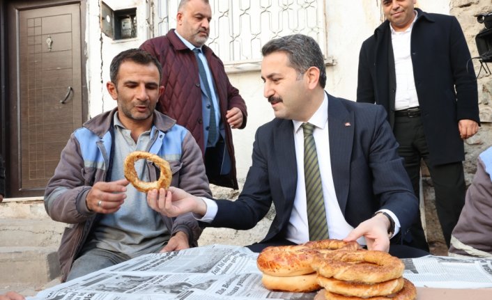Belediye Başkanı Eroğlu, mahallede yürütülen çalışmaları inceledi, daha sonra çalışanlarla simit yiyerek, çay içti.