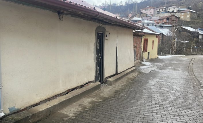 Heyelan nedeniyle köydeki yapılarda ve yollarda yarıklar oluştu.