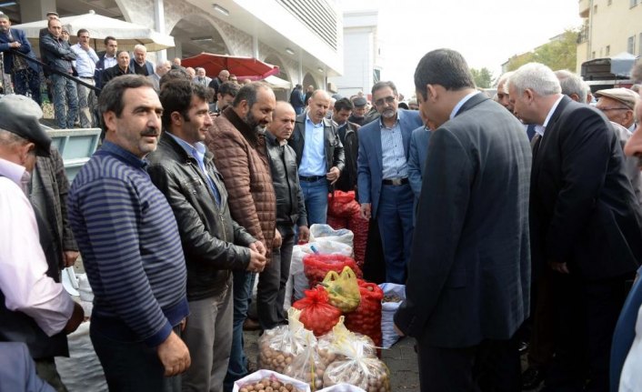 Sebze pazarı önünde açılan ceviz borsasında, üreticiler çuvallarla getirdikleri cevizlerini satışa sundu.