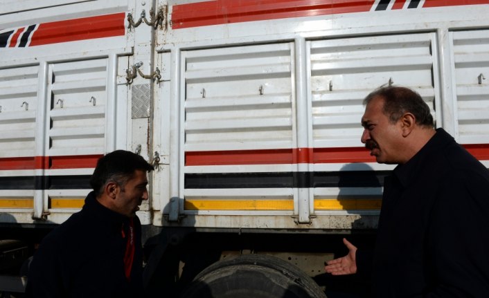 İl Emniyet Müdürü Göksel Topaloğlu, lastikleri yıpranmış olan bir kamyon sürücüsünü uyararak lastiklerini değiştirmesini istedi.