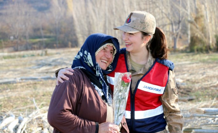 Jandarma ekipleri 5 Aralık Dünya Kadın Hakları Günü dolayısıyla kadınlara karanfil dağıttı.