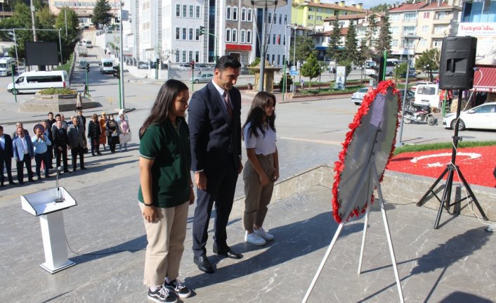 Cumhuriyet Meydanı'nda düzenlenen törende İlçe Gençlik ve Spor Müdürü İsmail Keskin tarafından Atatürk Anıtı'na çelenk sunulmasının ardından saygı duruşunda bulunuldu ve İstiklal Marşı okundu.