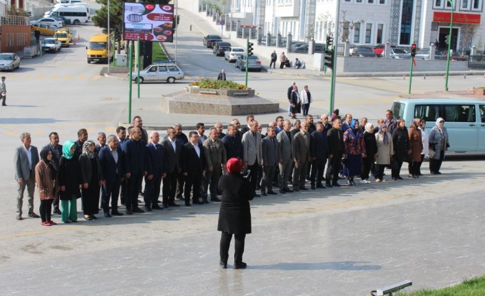 Cumhuriyet Meydanı'nda düzenlenen törende, muhtarlar tarafından Atatürk Anıtı'na çelenk sunulmasının ardından saygı duruşunda bulunuldu ve İstiklal Marşı okundu.