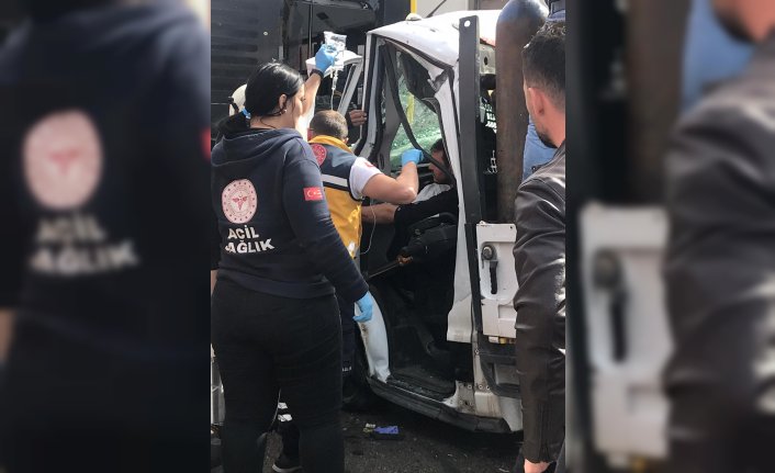 Trabzon'un Beşikdüzü ilçesinde belediye otobüsüne çarpan kamyonetin sürücüsü yaralandı.