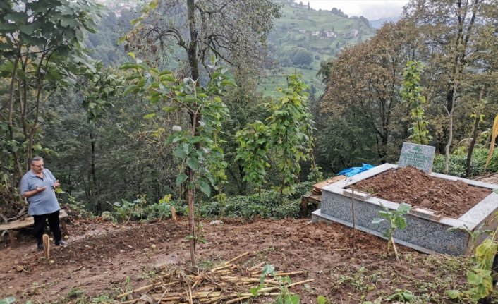 Ömer Saruhan'ın oğlu Yüksel Saruhan, evlerinin yakınında bulunan aile mezarlığını ziyaret ederek, babası ve amcalarının kabri başında dua etti.