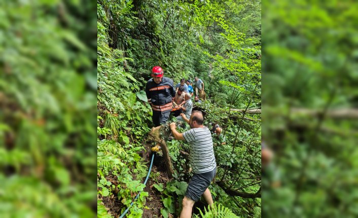 Trabzon'un Çarşıbaşı ilçesinde uçuruma düşen kadın, itfaiye ekiplerince kurtarıldı.