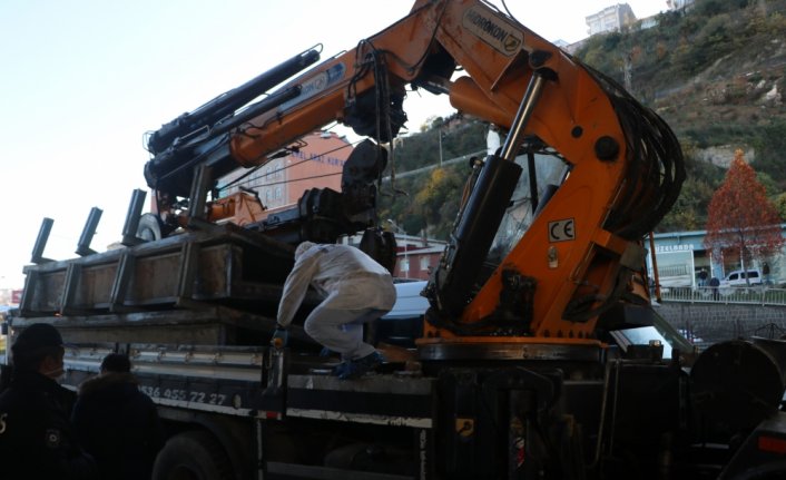 Yüksekliğin ayarlanamaması nedeniyle meydana gelen kazada, kamyonun kupası yerinden çıktı.