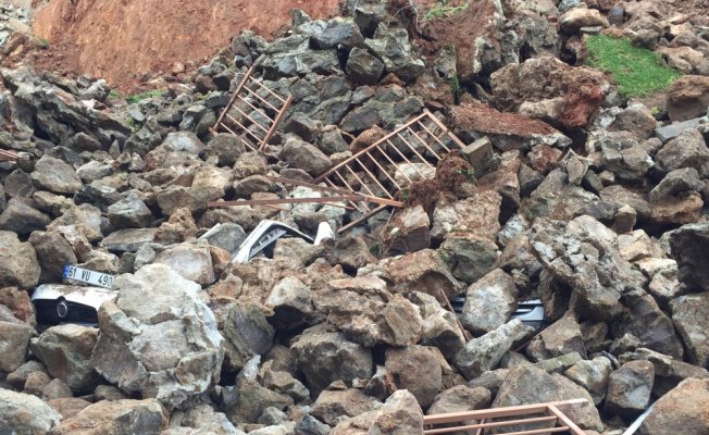 TRABZON (AA) - Trabzon'da, istinat duvarının çökmesi sonucu park halindeki 14 araç ve bir motosiklet göçük altında kaldı.