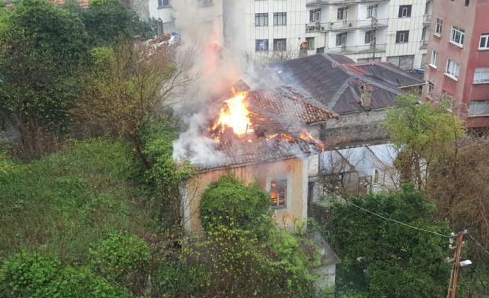 Trabzon Büyükşehir Belediyesi itfaiye ekiplerince söndürülen yangında, metruk bina zarar gördü.