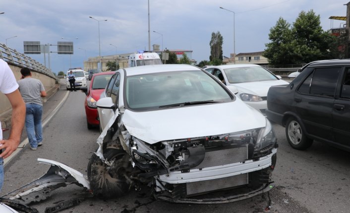 Polisin ihtarı üzerine duran otomobilin ardından gelen 6 araç duramayınca zincirleme trafik kazası meydana geldi.