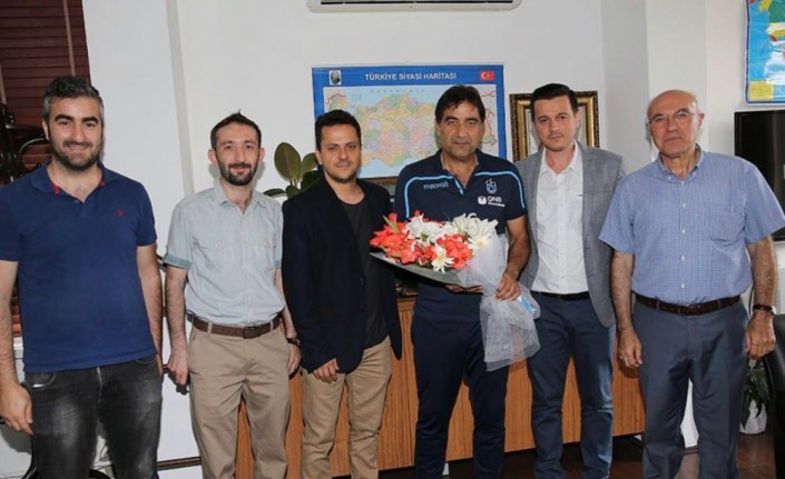 TSYD Trabzon Şubesi Başkanı Selçuk Kılıç, bordo-mavili takımın teknik direktörü Karaman ile bir süre sohbet etti.