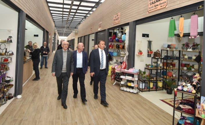 Tarihi Avrasya Pazarı Derneği Başkanı Muzaffer Beşinci ile bir araya gelen Çelebi ve Eren, pazarda yapılan çalışmalarla ilgili bilgi aldı.