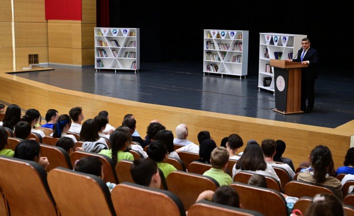 Törende konuşan Vali Özarslan, "Tübitak Bilim Yayınları Kitaplarını ve TÜBİTAK Popüler Bilim Dergilerini" öğrencilerle buluşturduklarını söyledi.