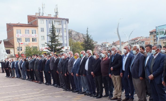 Turhal Köy ve Mahalle Muhtarları Yardımlaşma ve Dayanışma Derneği Başkanı Bahri Topsakal ve beraberindekiler, Cumhuriyet Meydanı'nda bulunan Atatürk Anıtı'na çelenk sundu, saygı duruşunda bulundu ve İstiklal Marşı okudu.