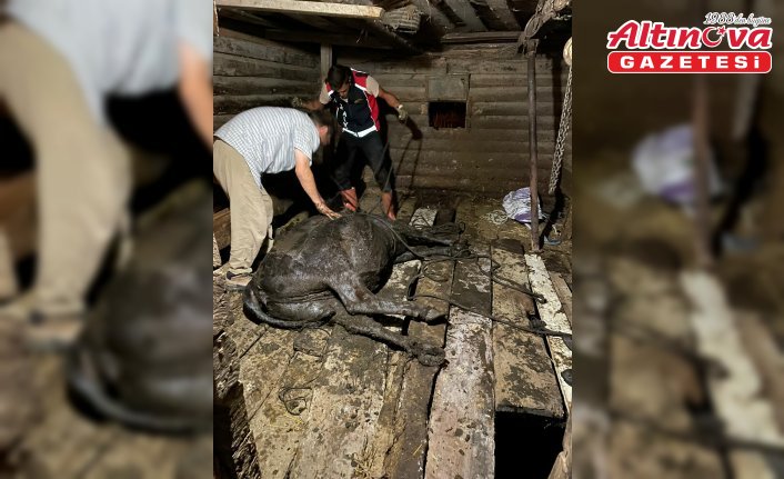 İlçeye bağlı Kayabaşı köyünde besicilik yapan Gülyaz Ünlü'ye ait inek, ahır zeminin çökmesi sonucu oluşan çukura düştü.