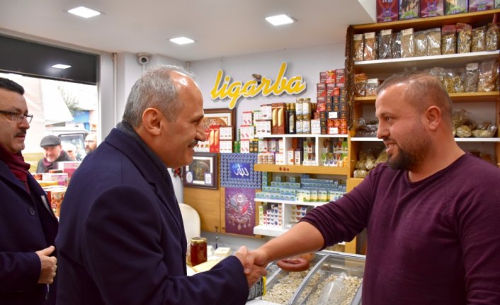 Seçim irtibat bürosu ziyaretinin ardından Turhan, Kalkınma Mahallesi'nde esnafı ziyaret etti.