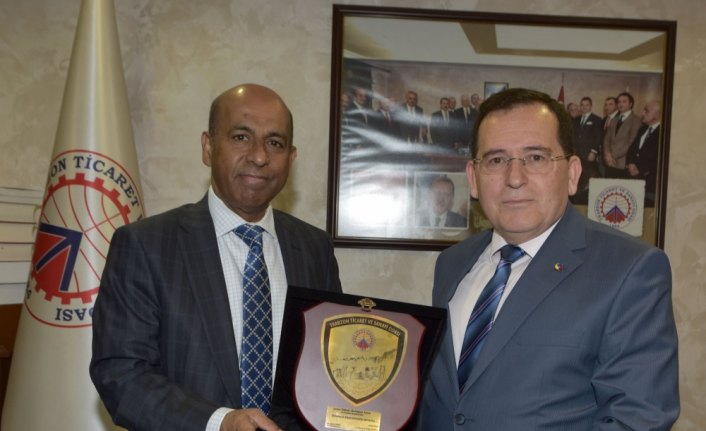 Amza ve beraberindeki büyükelçilik görevlileri, Trabzon Ticaret ve Sanayi Odası (TTSO) Başkanı Suat Hacısalihoğlu'nu ziyaret etti.