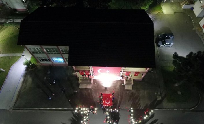 Ellerinde Türk bayrakları bulunan ve birlikte İstiklal Marşı'nı okuyan öğrenciler daha sonra bedenleriyle "TSK" yazarak asker selamı verdi.