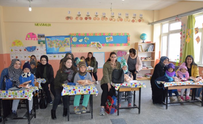 SAMSUN (AA) - Samsun'da üniversite öğrencileri, hayata geçirdikleri proje kapsamında ördükleri atkı ve bereleri ilkokulda eğitim gören çocuklara hediye etti.
