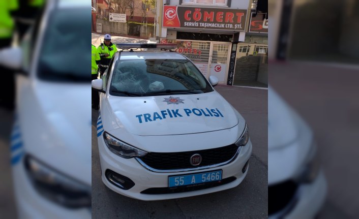 Cenazeleri olduğunu öne sürerek trafik polisleriyle tartışmaya başlayan sürücü M.B. (60), araçtan indikten sonra polis aracının camını yumruklayarak kırdı.