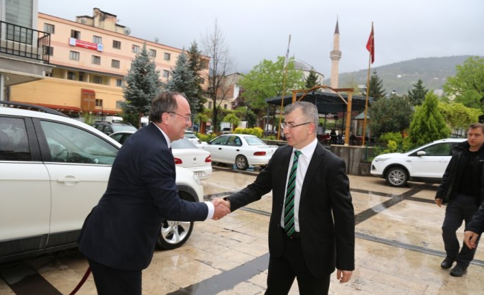 ARTVİN (AA) - Artvin Valisi Yılmaz Doruk, 31 Mart Mahalli İdareler Genel Seçimlerinde Artvin Belediye Başkanı seçilen Demirhan Elçin'e "hayırlı olsun" ziyaretinde bulundu.