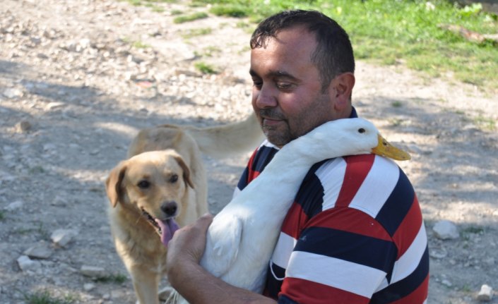 Aktaş, AA muhabirine yaptığı açıklamada, köpeği Çarli ile ördeği Viki'yi bir arkadaşından geçen yıl aldığını söyledi.