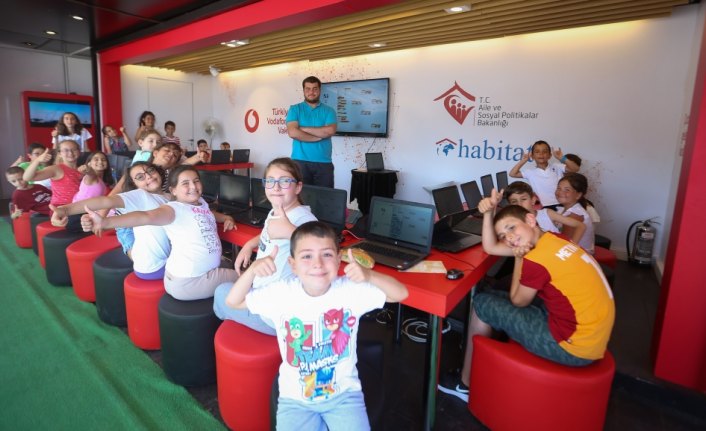 Türkiye Vodafone Vakfı’nın Habitat Derneği ortaklığında kodlama eğitimlerini ülkenin dört bucağına taşıma hedefiyle yola çıkardığı Yarını Kodlayanlar Eğitim Tırı, yaklaşık 7 ayda 6 bin kilometrenin üzerinde yol kat ederek 12 ilde 2 bin 500 çocuğa ulaşacak. Ziyaret ettiği illerde şehir merkezlerinin yanı sıra köy ve kasabalara da giden Yarını Kodlayanlar Eğitim Tırı’nda çocuklara bir hafta süreyle her gün 2 ayrı seansta 4’er saatlik Scratch eğitimleri veriliyor.