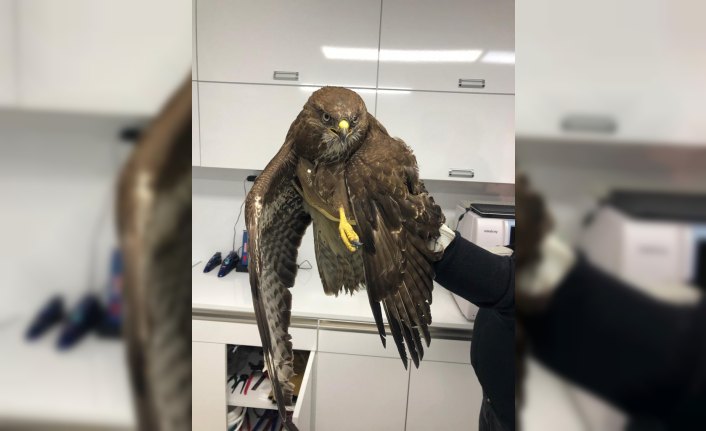 Veteriner Hekim Tolga Kandıralı, AA muhabirine yaptığı açıklamada, avcılar tarafından vurulduğu tahmin edilen şahinin, sol kanadında saçma yaraları bulunduğunu söyledi.