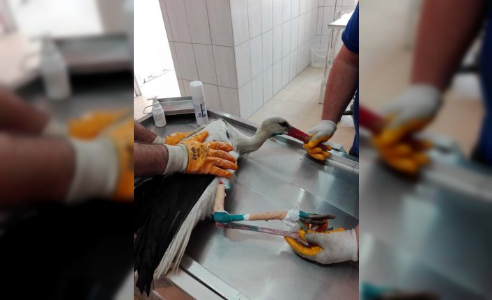 Ekiplerin, Hayvan Barınağı Veteriner Hekimliğine teslim ettikleri leylek, tedavi altına alındı.