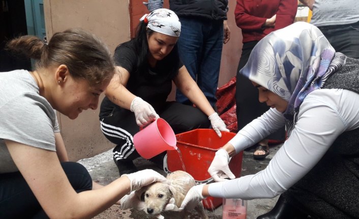 GİRESUN (AA) - Giresun'un Eynesil ilçesinde hasta yavru sokak köpeğine üniversite öğrencileri sahip çıktı.