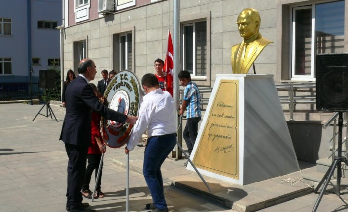 Kutlamalar kapsamında Hükümet Konağı önünde bulunan Atatürk Anıtı'na İlçe Milli Eğitim Müdürlüğü çelengi sunuldu.