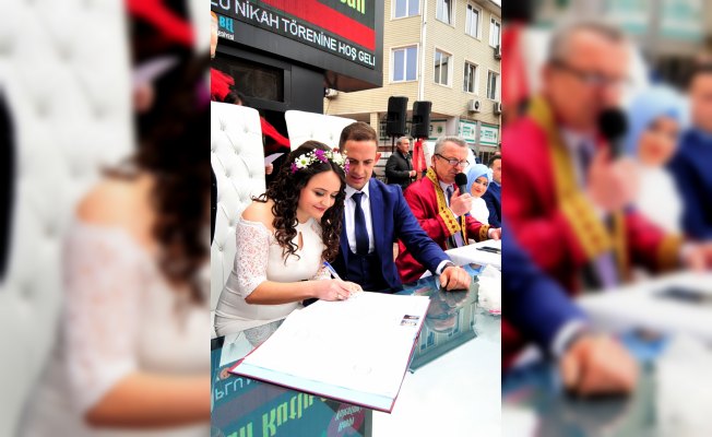 Kantarcı, burada yaptığı konuşmada, "14 Şubat Sevgililer Günü" dolayısıyla belediyeye müracaat eden 4 çiftin ilçe meydanında düzenlenen nikah törenine katıldıklarını söyledi.