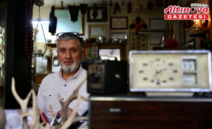 Giresun'da tespih ustası Mehmet Arslan, antika tutkusuyla topladığı eski eşyaları atölyesinde sergileyerek müşterilerine nostalji yaşatıyor.