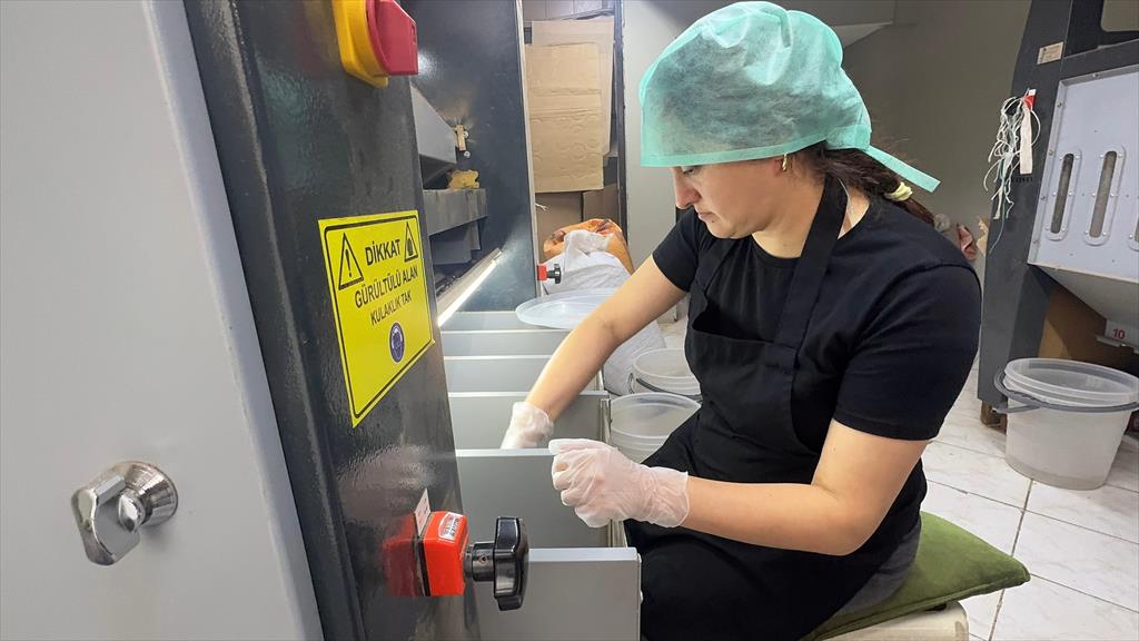 Giresunlu kadın girişimci Emel Çakır, KOSGEB'in Genç Girişimci Destek Programı sayesinde kurduğu tesiste fındıktan çeşitli ürünler imal ediyor.