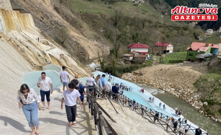 Travertenlerde ziyaretçi yoğunluğunun ilerleyen günlerde artması bekleniyor. GİRESUN (AA)