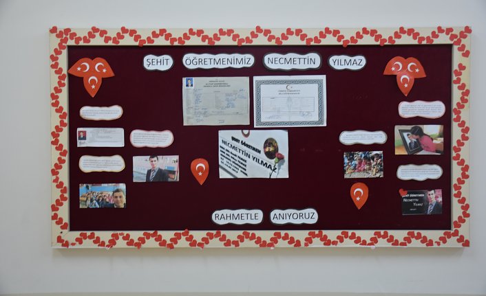 Şehit öğretmenin karnesi, teşekkür belgesi ve diploması da mezun olduğu Ali Fuat Kadirbeyoğlu Anadolu Lisesindeki panoda yer alıyor.