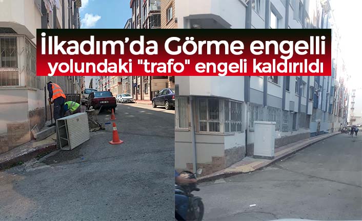 Sarısoy'un paylaşımları üzerine, engelli yolundaki trafo kaldırıldı.