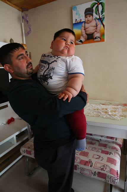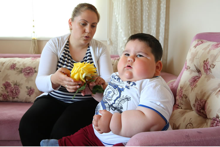 Samsun'da yaşayan Sedat-Sevda Bekte çiftinin 1,5 yaşındaki çocukları Yağız'ın kilosu, leptin hormonu eksikliği nedeniyle 32 kiloya ulaştı.