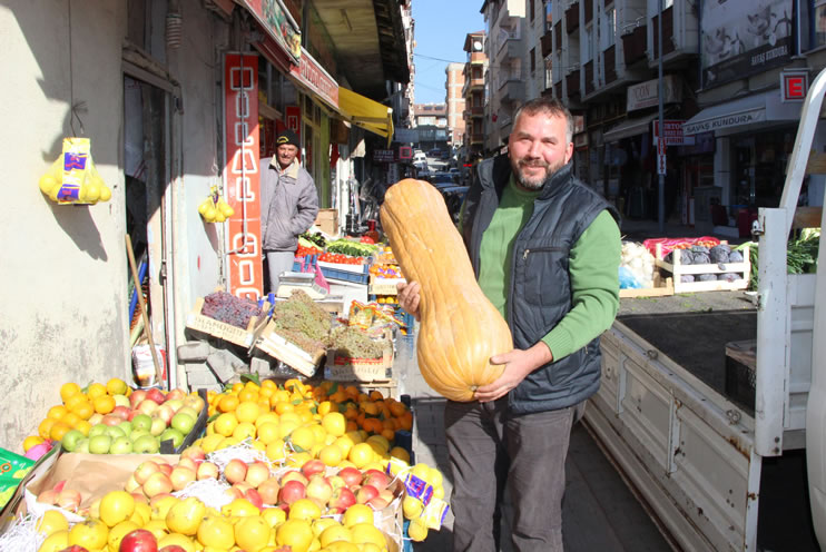 25 Mayıs Mahallesi'nde manavlık yapan Bayram Kul'un Amasya Hali'nden aldığı 24 kilogram ağırlığındaki bal kabağı, ilgi odağı oldu.