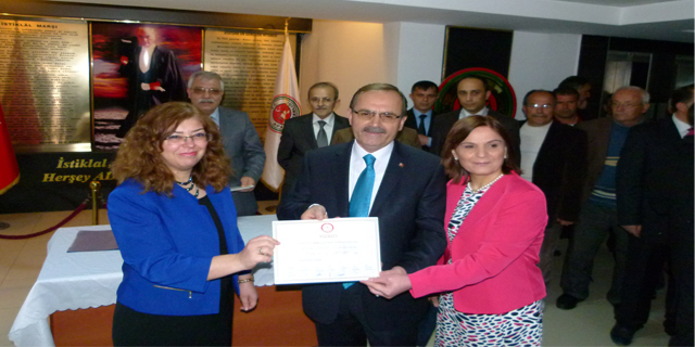 AK Parti Bafra Belediye Başkanlığına tekrar seçilen Zihni Şahin, mazbatasını aldı.