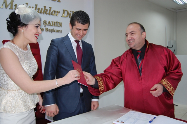 Yuvayı dişi kuşun yaptığına dikkat çeken Bafra belediyesi evlendirme memuru, Yaşar Şenel davetlilerin alkışları ile birlikte evlilik cüzdanını Fadime Deveci Kozan'a tevdii etti.