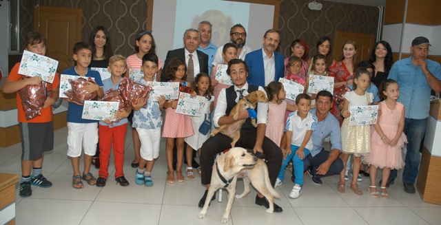 Sokak köpekleri 'Bal ile Betty' film ekibi, çekimlerin bitmesi nedeniyle, Bafra Öğretmenevi toplantı salonunda basın toplantısı ve filmde rol alan 39 çocuklar için belge töreni düzenledi.