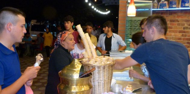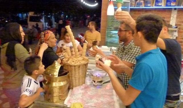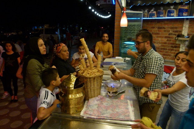 Dolup taşan dondurmacılara sıraya giren vatandaş bir külah dondurma almak için uzun kuyruklar beklemek zorunda kalıyor. Mevsimine göre değişen dondurma çeşitleri var.