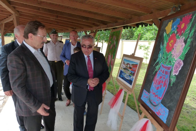 Atatürk Ortaokulu Çevrecilik standı ve Görsel sanatlar resim sergisi Bafra Kaymakamı Halis Arslan ve beraberindeki heyet tarafından gezildi.