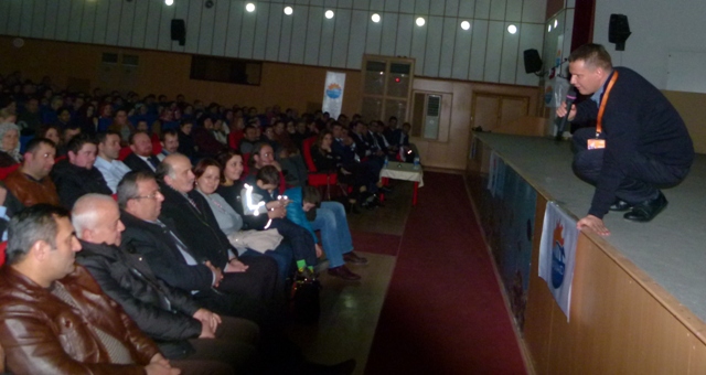 Saygı duruşu ve İstiklal Marşının okunmasından sonra açılış konuşması yapan Bafra (GİAD) Başkanı Yavuz Selim Muratoğlu,”Bu günlerde en çok ihtiyacımız olan birlik beraberliği bugün bu salonda sağladığınız ve etkinliğimize katıldığınız için hepinizi saygıyla selamlıyorum. Bafra Genç İşadamları Derneği olarak 5.Yılımızı doldurmak üzereyiz ve bu güne kadar birçok farklı projelerle sizlerle buluşma fırsatı yakaladık. Bu etkinliğimizde ülkemizde kişisel gelişim üzerine farklı yaklaşımları olan izgören Akademisi eğitmenlerinden Sayın Gökhan Okçu ile ‘İnsan Tanıma Sanatı’ konulu bir seminer düzenledik ve hayatımıza yeni bir bakış açısı kazandıracağını düşündük. Tüm bu kişisel gelişim eğitimleri insanları pozitif düşünceye sevk edebilmek amacını taşımaktadır. Aslında hepimize lazım olan da bu değil mi? Özellikle son yıllarda ülkemizde yaşanan seçimler, ekonomik problemler, komşu ülkelerle yaşanan problemler hele de son günlerde eklenen Rusya krizi ile iyi şeyler düşünmeyi çoktan unuttuk bile. Tabiki bu gelişmeler istemesek de ailemizle ve çevremizle olan ilişkilerimize sosyal hayatımızın tümüne etki ediyor. Tam da bu nokta da tüm bu olumsuzlukları bir kenara atıp birbirimize inanmalı, kimseyi ötekileştirmeden hayatımıza yeni bir sayfa açmalıyız ve geçmişi bir kenara bırakıp iyi şeyler düşünmeliyiz” dedi.